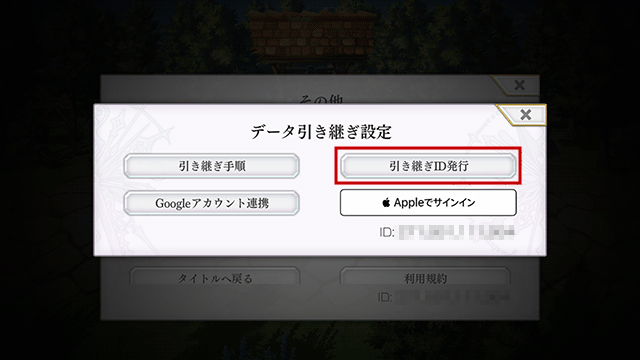 以上で引き継ぎ設定は完了となります。引き継ぎIDとパスワードはメモやスクリーンショット等に控えてください。