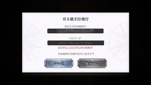 ※引き継ぎIDやパスワードは他人に教えたり、公開しないでください。