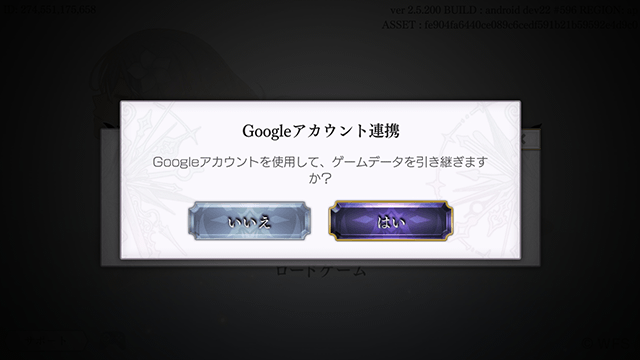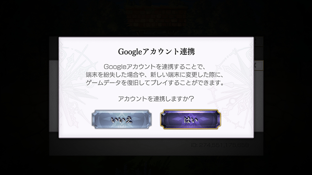 【2】[Googleアカウント連携]を選択し、[はい]を押します。